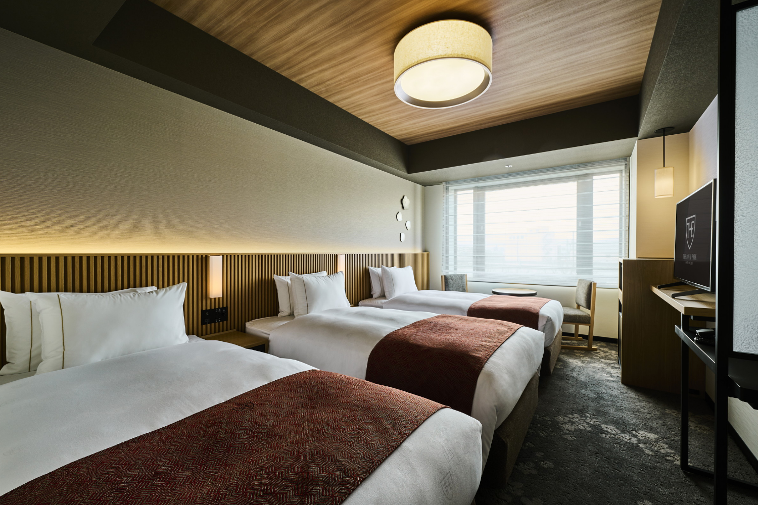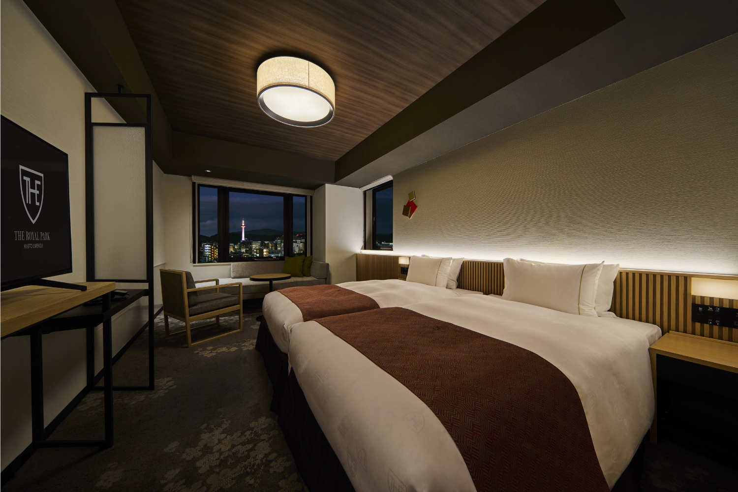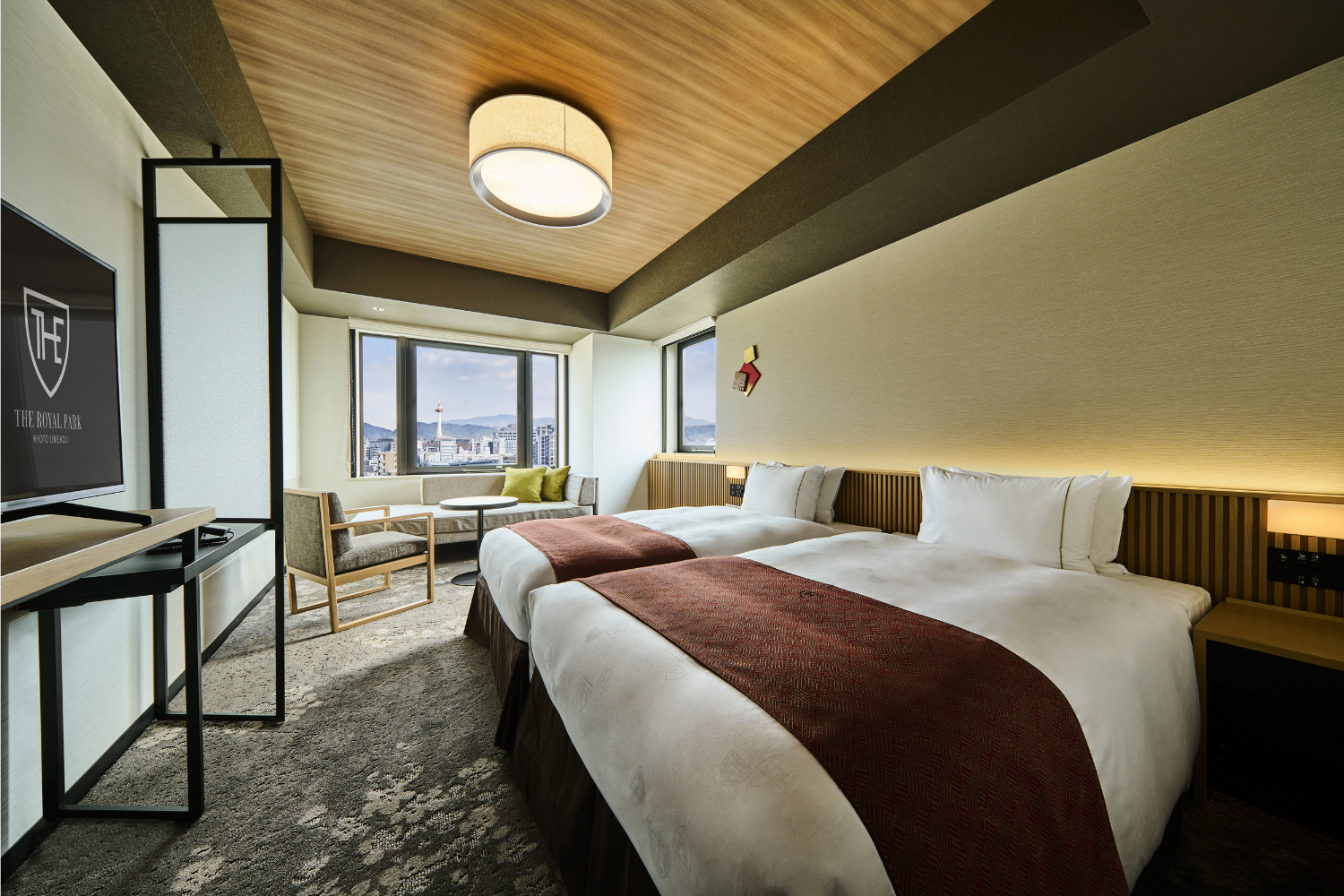 雙床房,兩側被窗戶包圍,充滿開放感。