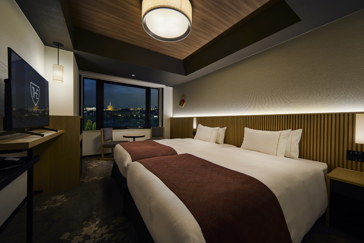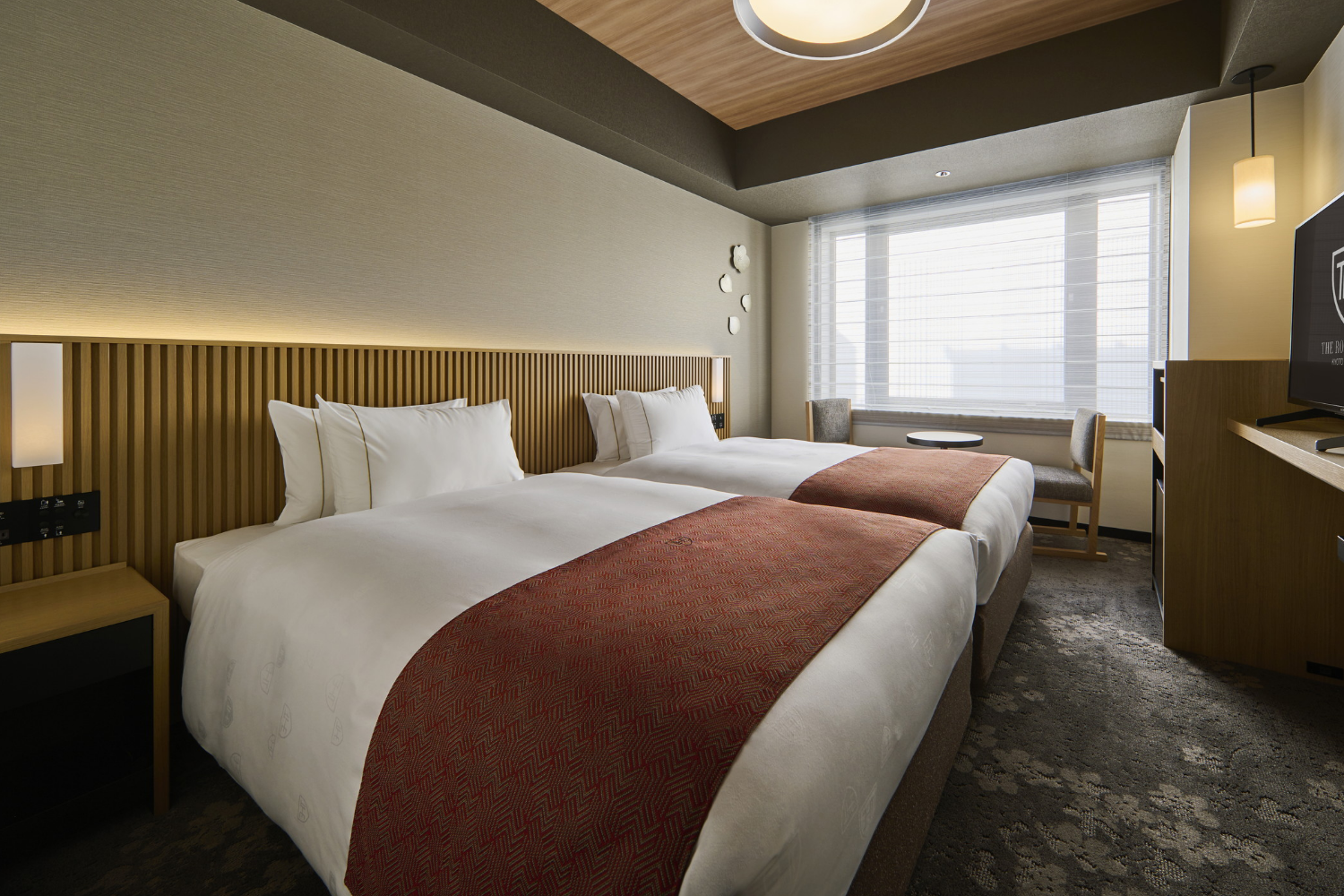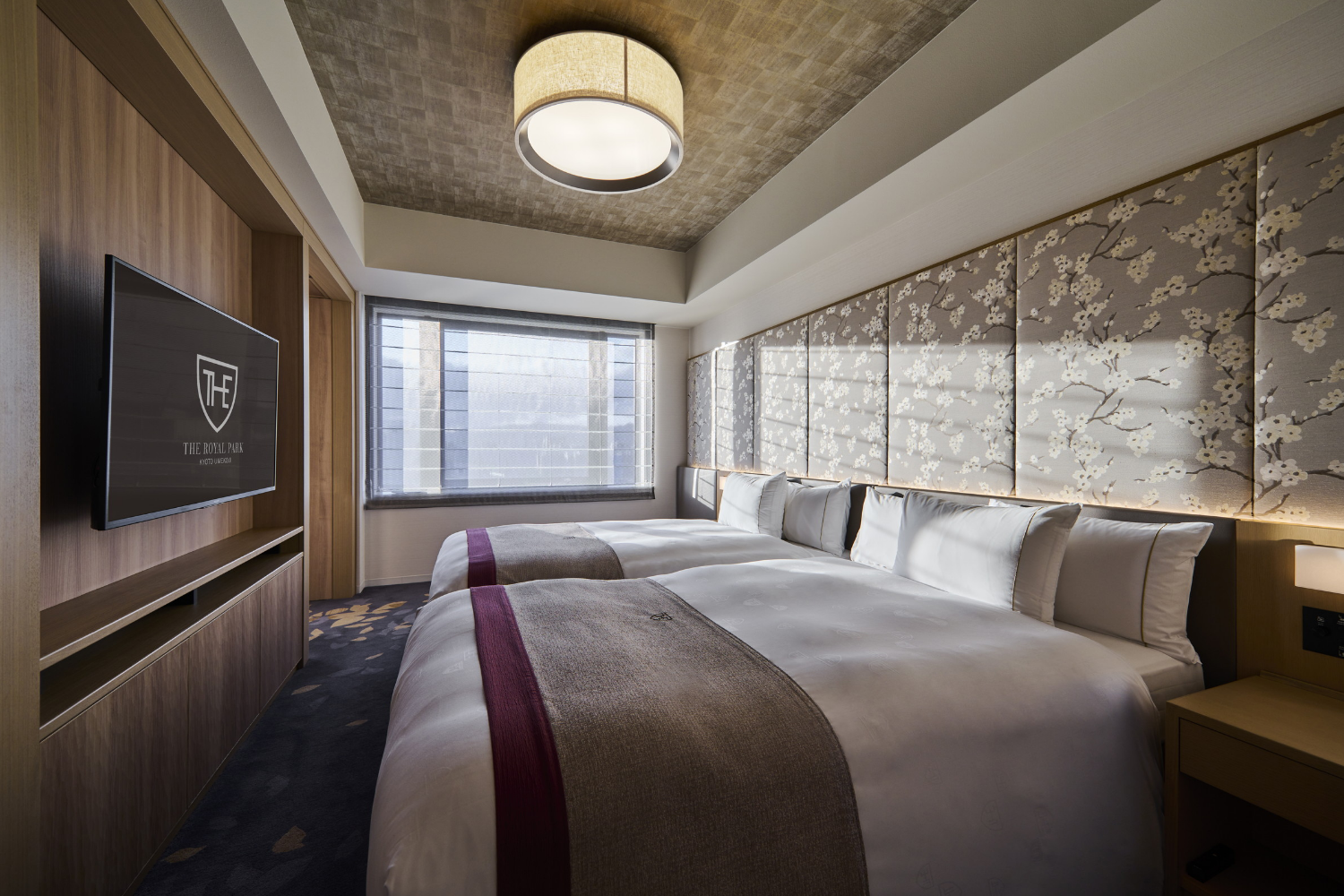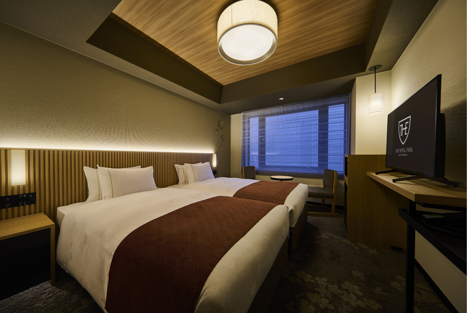 雙床房,兩側被窗戶包圍,充滿開放感。